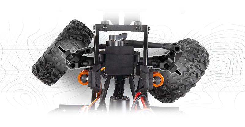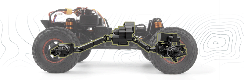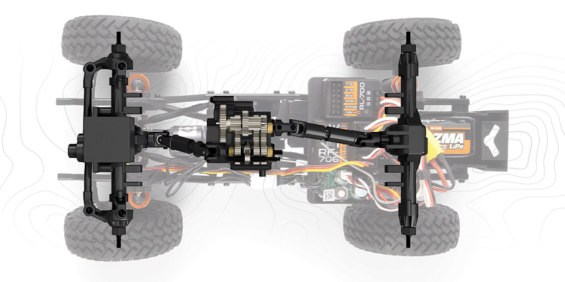 çelikten yapılmış C kanallı şasi ve gerçekçi aktarma organları tasarımına sahiptir. Hassas mühendislikle tasarlanmış tamamen metal 2 vitesli şanzıman, tam zamanlı kilitli diferansiyeller,